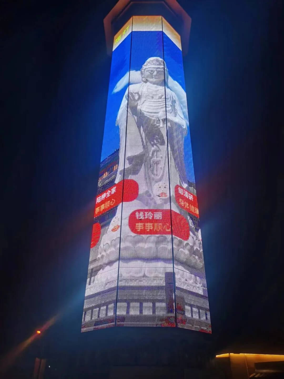 領(lǐng)導(dǎo)、印瑞法師、證道法師為觀音祈福燈揭幕。光明燈,運(yùn)用聲光電打造,日夜不同輪奐之美,佛光普照如臨意境,運(yùn)用超大曲面屏,結(jié)合佛學(xué)故事,佛教/佛陀起源等動(dòng)畫音/視頻,打造極樂之境。一點(diǎn)一位,成為信眾游客熱門打卡景點(diǎn)。