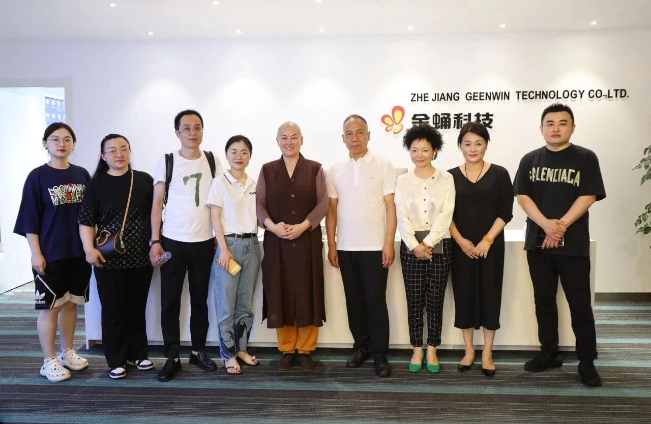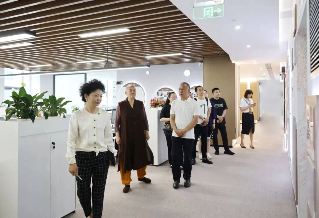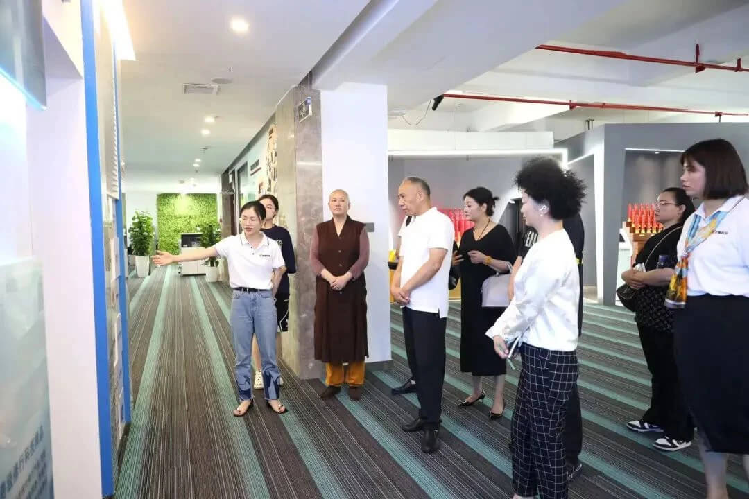 2023年7月12日,徐州市民宗局副局長黃修建、全國第一比丘尼道場竹林寺住持明道大和尚等一行蒞臨?;劭毓杉捌煜伦庸窘鹩伎萍?、心旅文化考察指導。